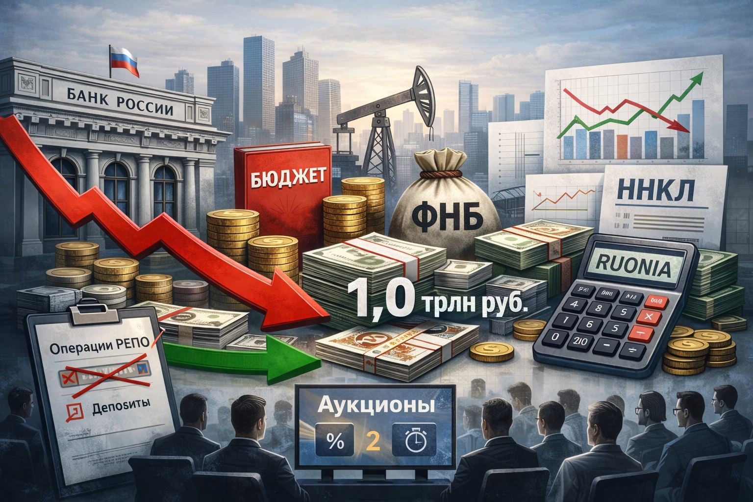 2025 год характеризовался изменением условий ликвидности в банковском секторе Российской Федерации. В течение года наблюдался устойчивый отток ликвидности, что потребовало активной адаптации инструментов денежно-кредитной политики со стороны Банка России, а также повлияло на структуру спроса банков на источники фондирования.