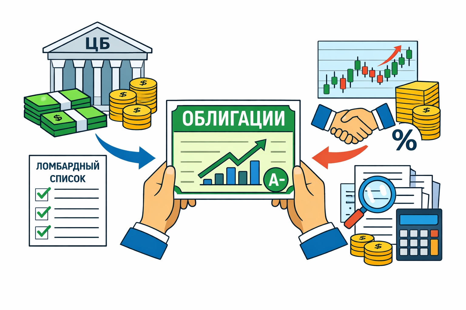 На практике это не эквивалент кредитной безрисковости. В ломбардный список могут входить и бумаги компаний с повышенным отраслевым или корпоративным риском, если они соответствуют минимальным требованиям по рейтингу, ликвидности и раскрытию информации.